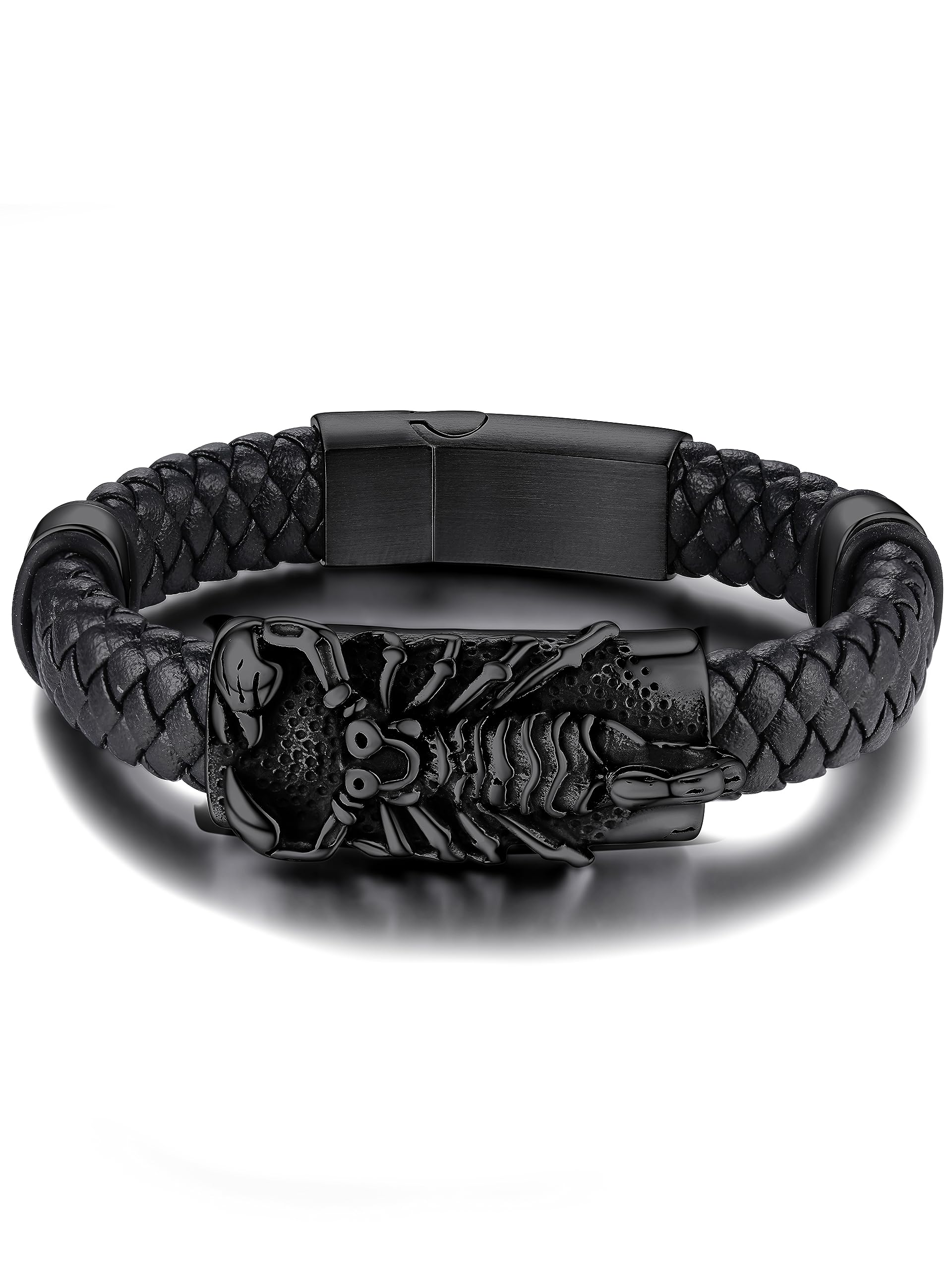 KeyStyle Leather Bracelet for Men Punk Vintage Braided Cuff Bangle Bracelet Men Jewelry Birthday Valentines Gift for Husband