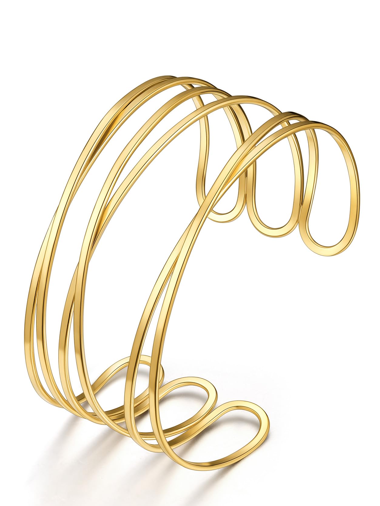KeyStyle Gold Cuff Bracelet for Women Gold Plated Bangles Bracelets Multi-layer Cross Wire Stackable Bracelets Jewelry Birthday Gifts for Her