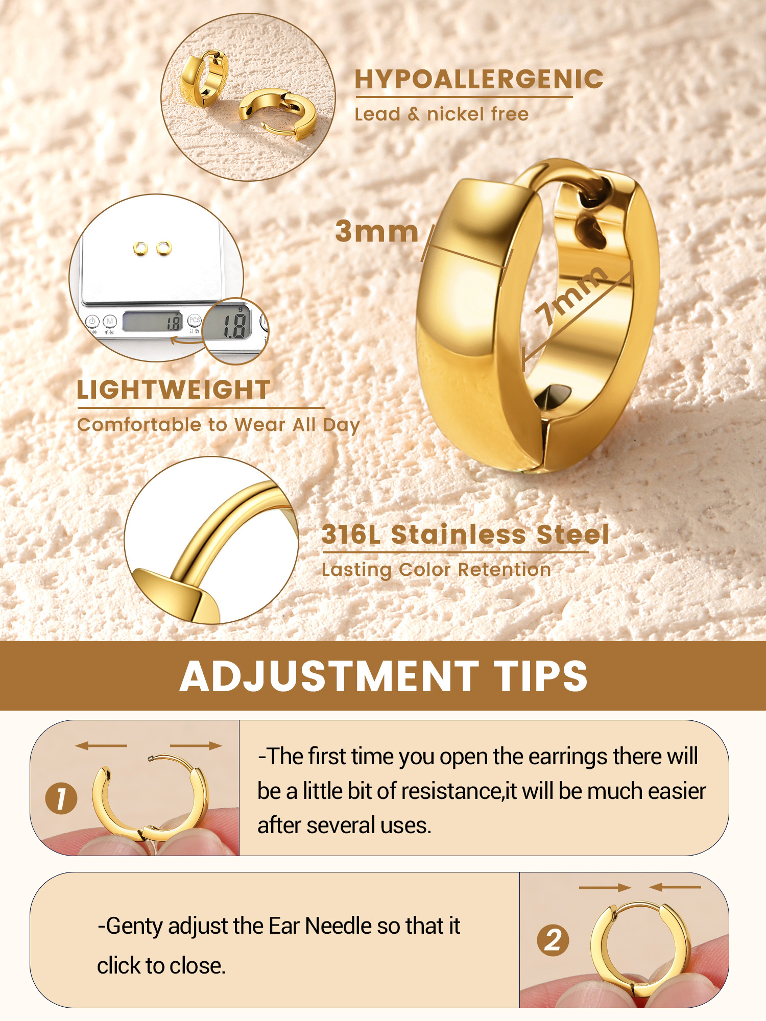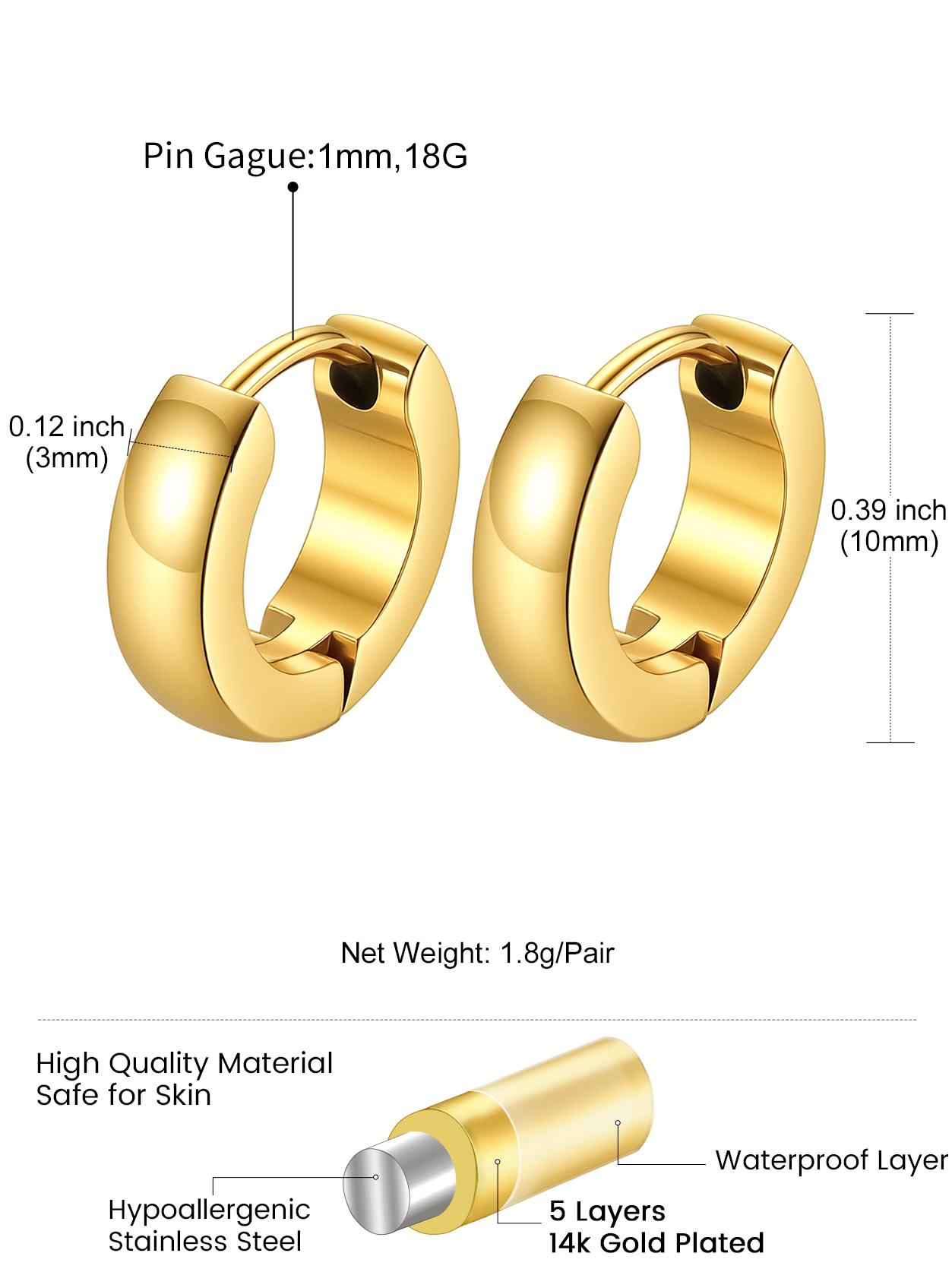 Designed to be lightweight and comfortable, these hoops are gentle on sensitive ears and ideal for long-term wear. Their clean, modern design pairs effortlessly with casual or dressy outfits, making them a reliable jewelry essential for people of any age.