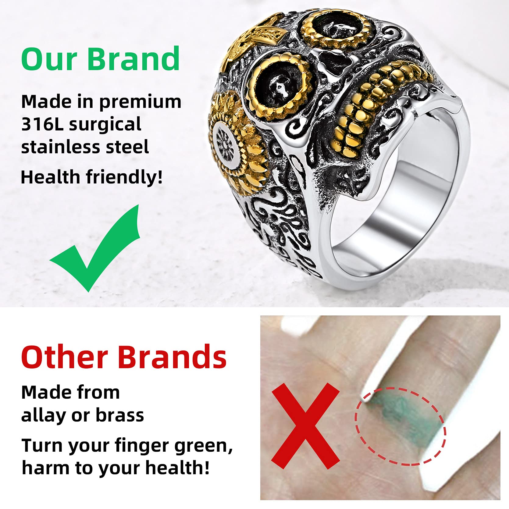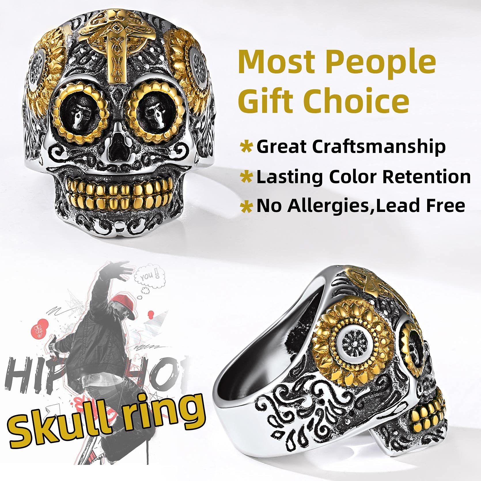 This KeyStyle men's ring is crafted from stainless steel, featuring a striking skull design. The vintage - inspired detailing, with Gothic elements like the cross on the skull and ornate patterns, makes it a bold statement piece. Ideal for bikers or those who love a punk - rock edge, it's perfect for parties, especially around Halloween. It makes an excellent gift for special occasions such as birthdays, Father's Day, or Christmas. Whether for your husband, boyfriend, father, brother, or boys who embrace a unique style, this skeleton - themed jewelry is more than just an accessory; it's a symbol of edgy individuality and fearless fashion.