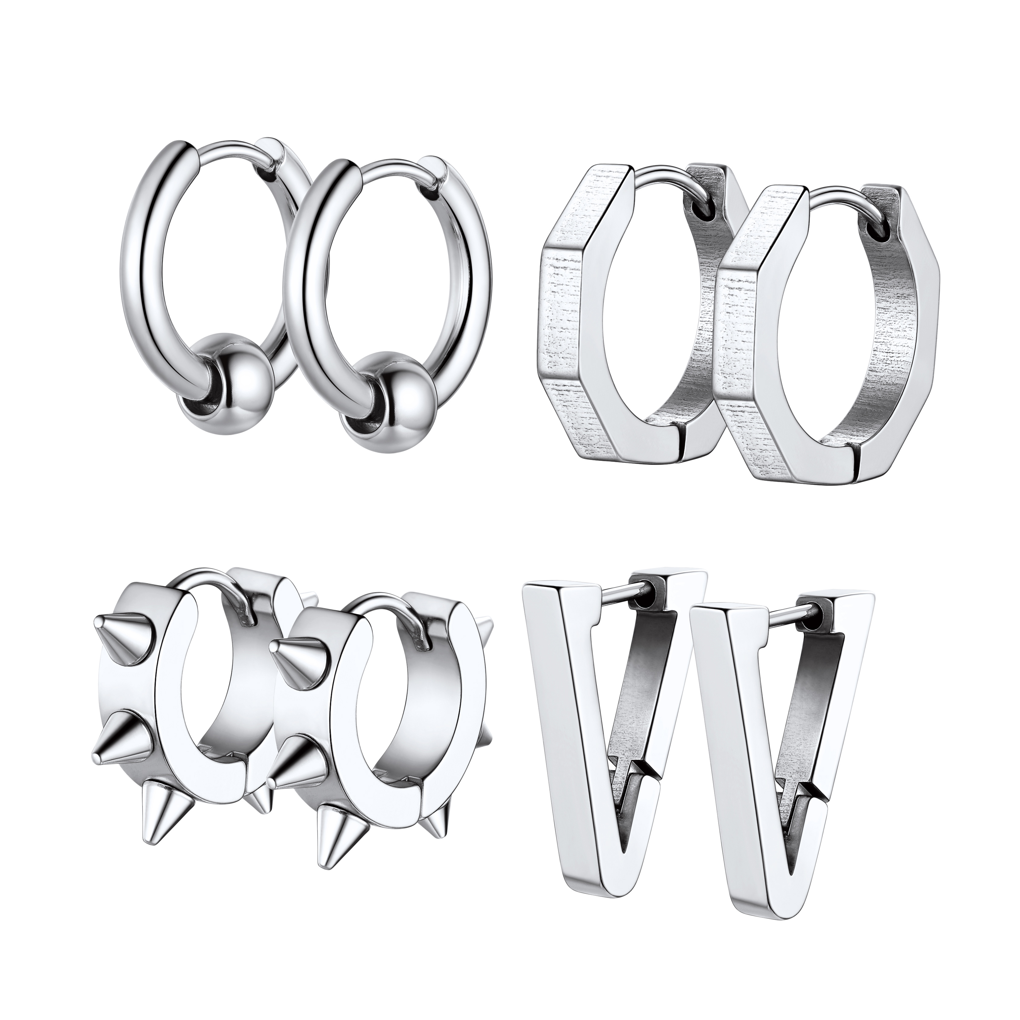 KeyStyle Small Hoop Earrings Thick Huggie Earrings for Women Men Lightweight Hoop Earrings Stainless Steel Jewelry Thanksgiving Day Christmas Gift